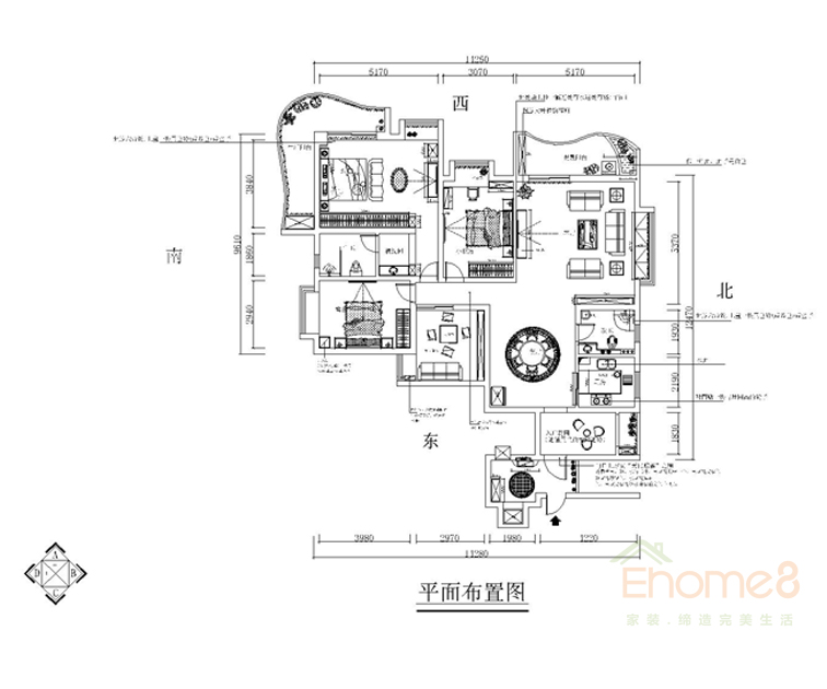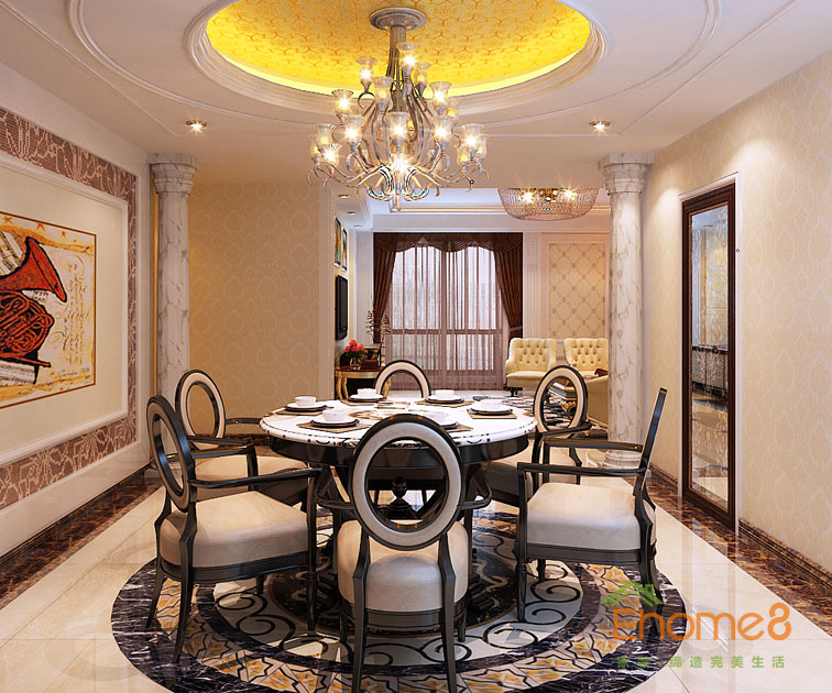 和諧家園108㎡三房一廳法式風格裝修效果圖