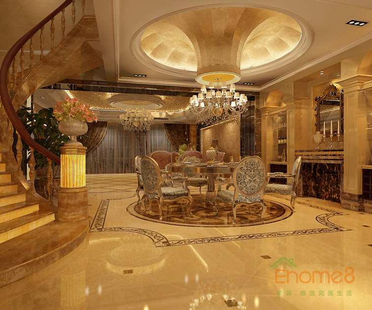 天鵝湖300㎡豪華別墅法式風(fēng)格裝修效果圖