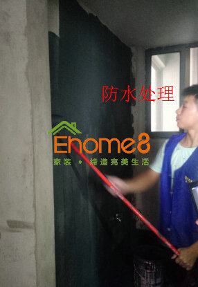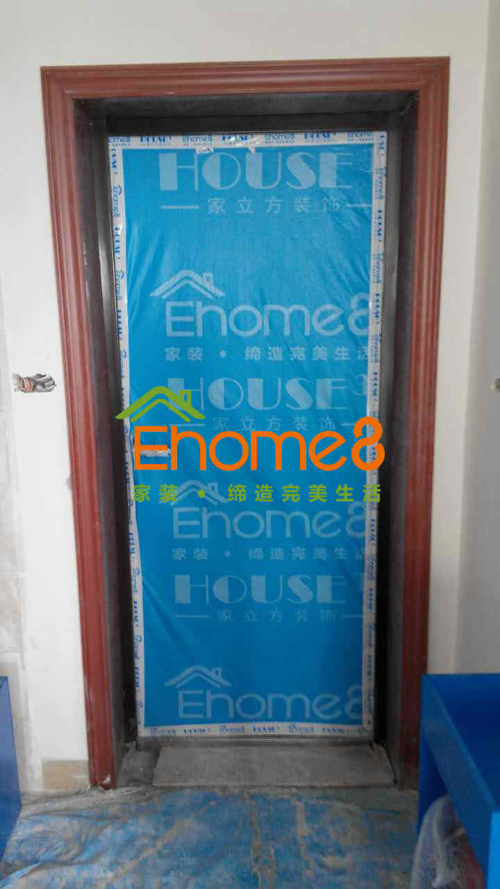衛生間門安裝及衛生間有色防水的涂刷及閉水試驗、鋪磚等