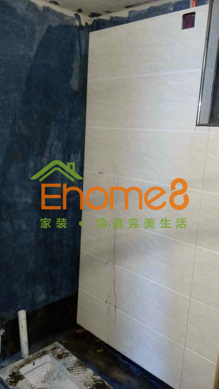 衛生間門安裝及衛生間有色防水的涂刷及閉水試驗、鋪磚等