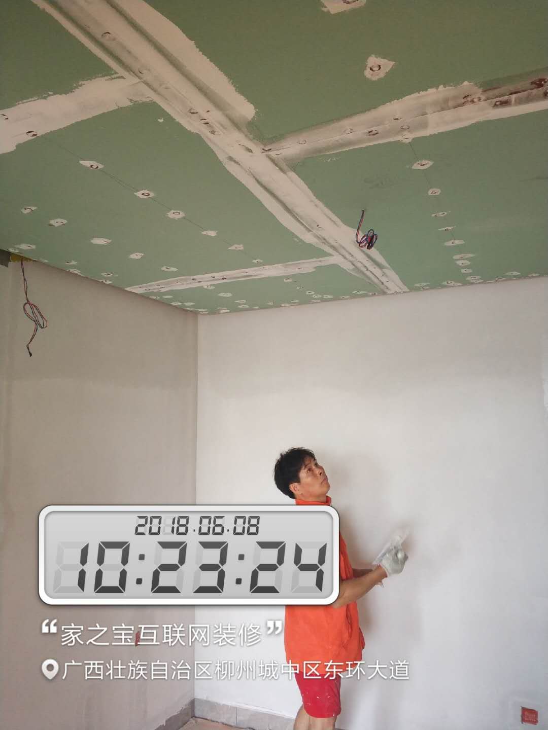 吊頂封板,對螺絲做防銹處理,涂上防銹漆