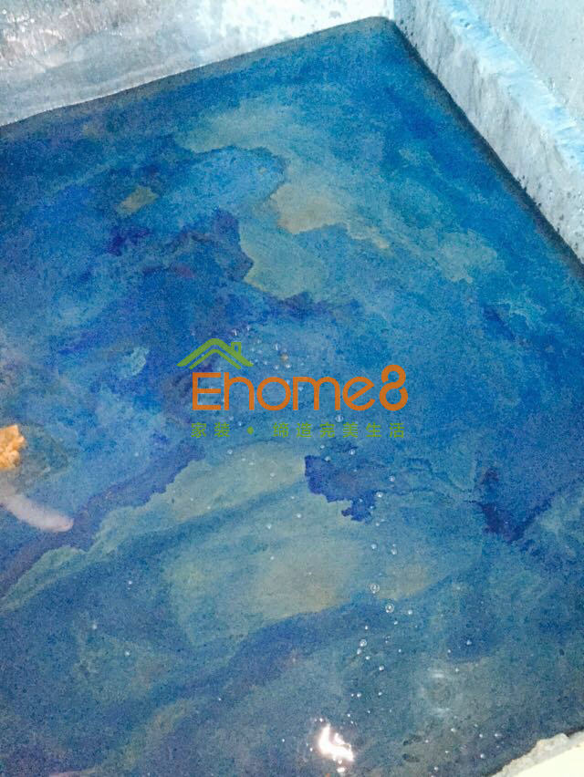 衛(wèi)生間門安裝及衛(wèi)生間有色防水的涂刷及閉水試驗,鋪磚完成。