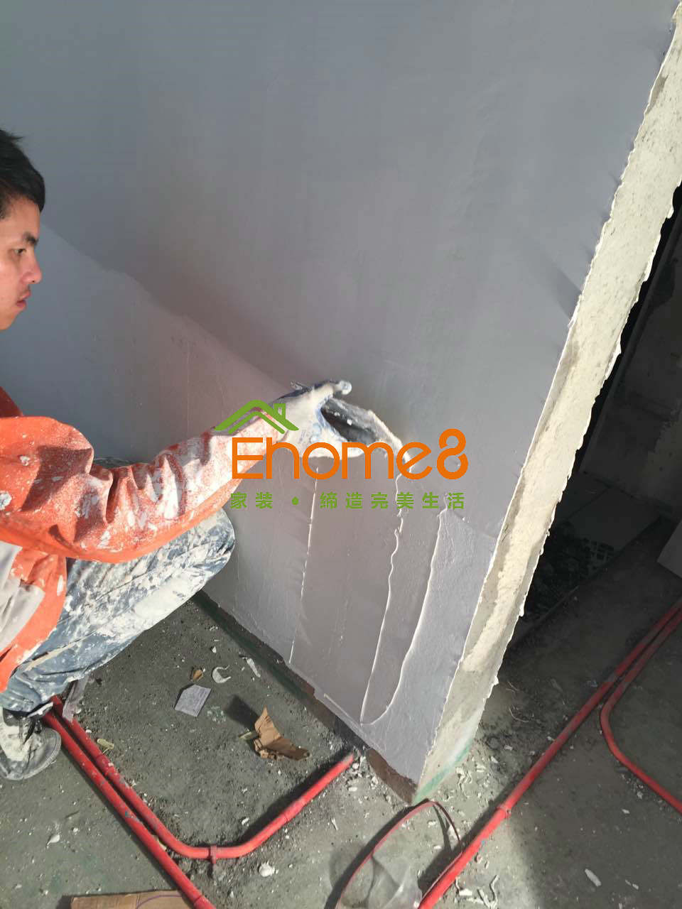 批刮膩?zhàn)?,平整墻面,涂刷乳膠漆完成