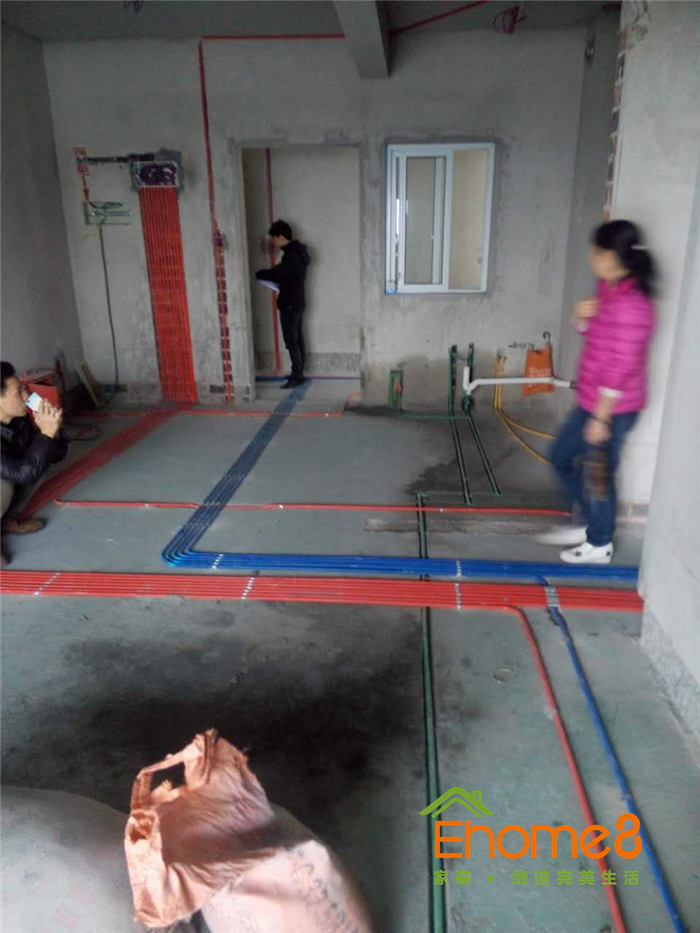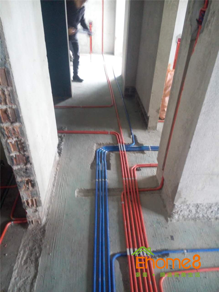 單管單槽,按國標工藝走線管水管,橫平豎直,八字拐角,采用德系歐標的水電材料